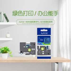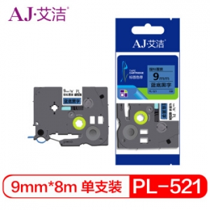 艾洁 标签带9mm蓝底黑字 PL-521 适用兄弟PT-1010;1100CH;1280;1400;18R TZe-521标签机色带