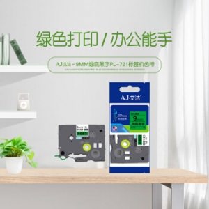艾洁 标签带9mm绿底黑字 PL-721 适用兄弟PT-1010;1100CH;1280;1400;18R TZe-721标签机色带