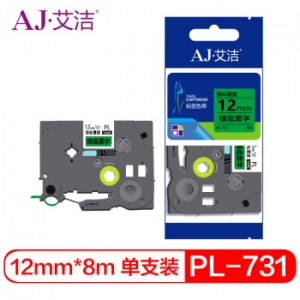 艾洁 标签带12mm绿底黑字 PL-731 适用兄弟PT-1010;1100CH;1280;1400;18R TZe-731标签机色带