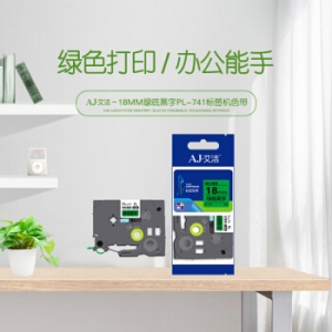 艾洁 标签带18mm绿底黑字 PL-741 适用兄弟PT-1010;1100CH;1280;1400;18R TZe-741标签机色带