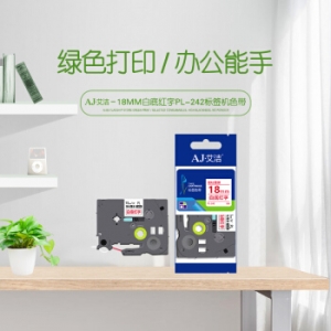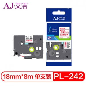 艾洁 标签带18mm白底红字 PL-242 适用兄弟PT-1010;1100CH;1280;1400;18R TZe-242标签机色带