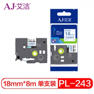 艾洁 标签带18mm白底蓝字 PL-243 适用兄弟PT-1010;1100CH;1280;1400;18R TZe-243标签机色带