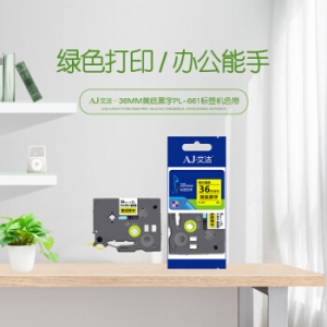 商品名称:艾洁 标签带36mm黄底黑字 PL-661 适用兄弟PT-1010;1100CH;1280;1400;18R TZe-661标签机色带