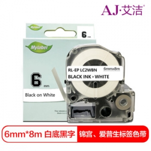 艾洁 爱普生6mm白底黑字标签色带 适用EPSON LW400;LW700;LW600P;LW1000P;LWZ900 LK-2WBN