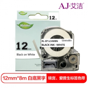 艾洁 爱普生 12mm白底黑字标签色带 适用EPSON LW300;LW400;LW700;LW600P;LW1000P LK-4WBN