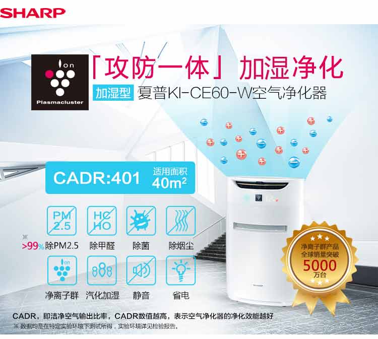 商品名称:夏普(SHARP)KI-CE60-W 加湿型 空气净化器