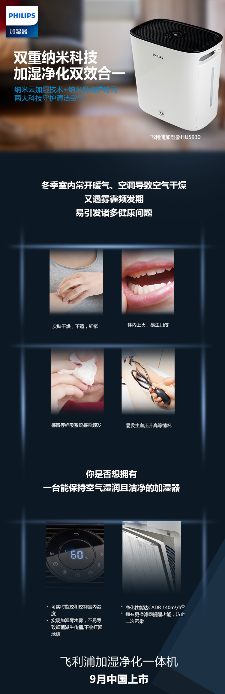 飞利浦(PHILIPS)HU5930无雾空气加湿器 Series 5000 净化加湿一体