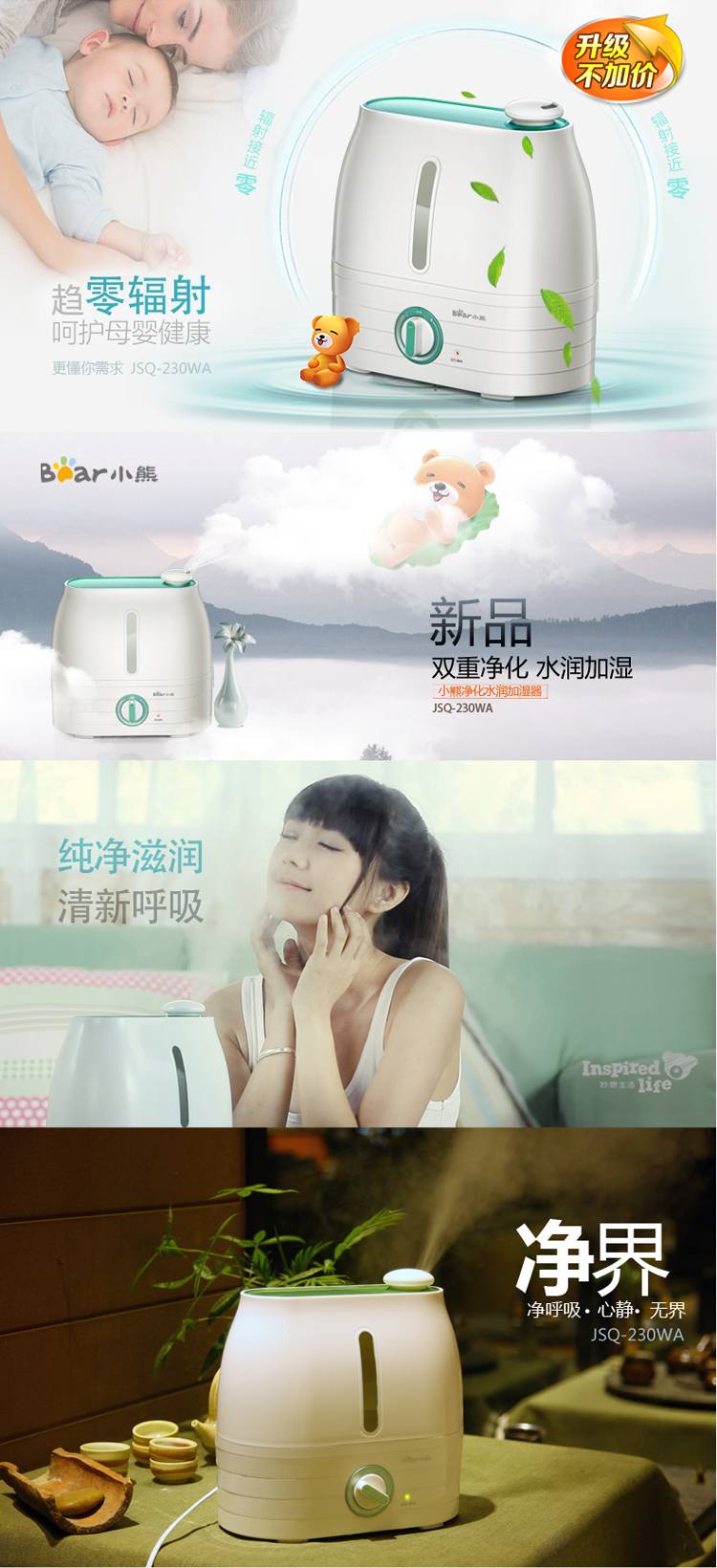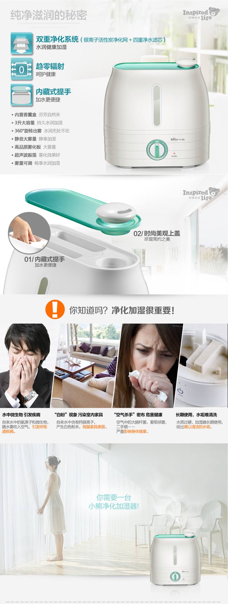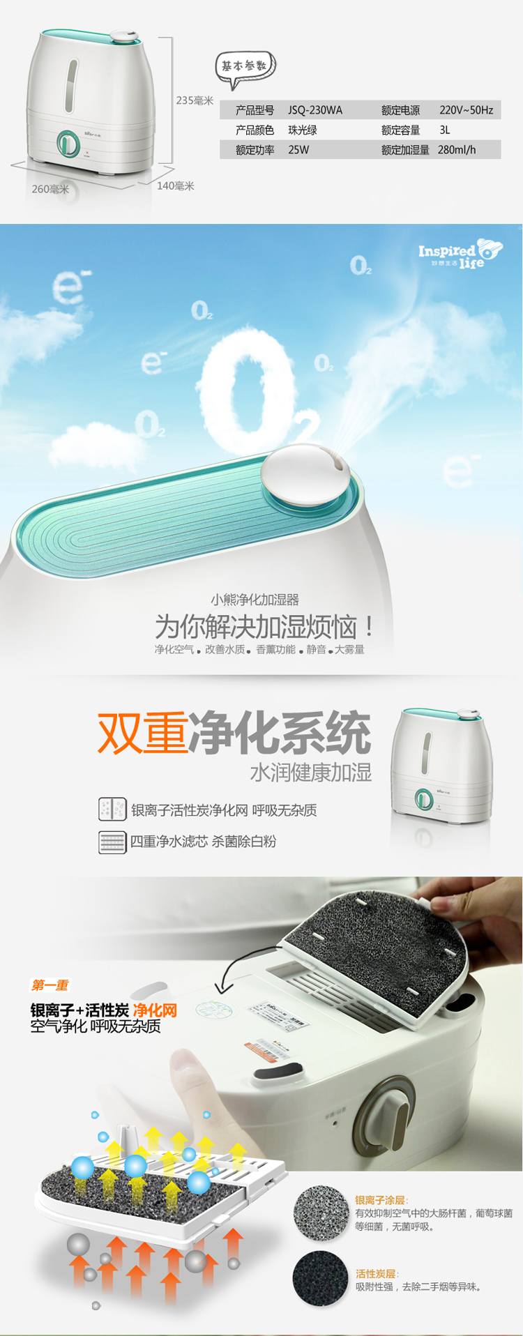 商品名称:小熊(Bear)JSQ-230WA 3升大容量 双重净化加湿器 静音