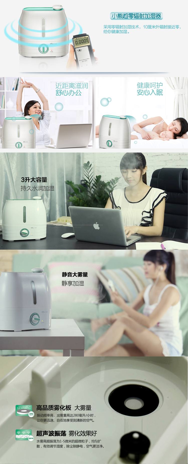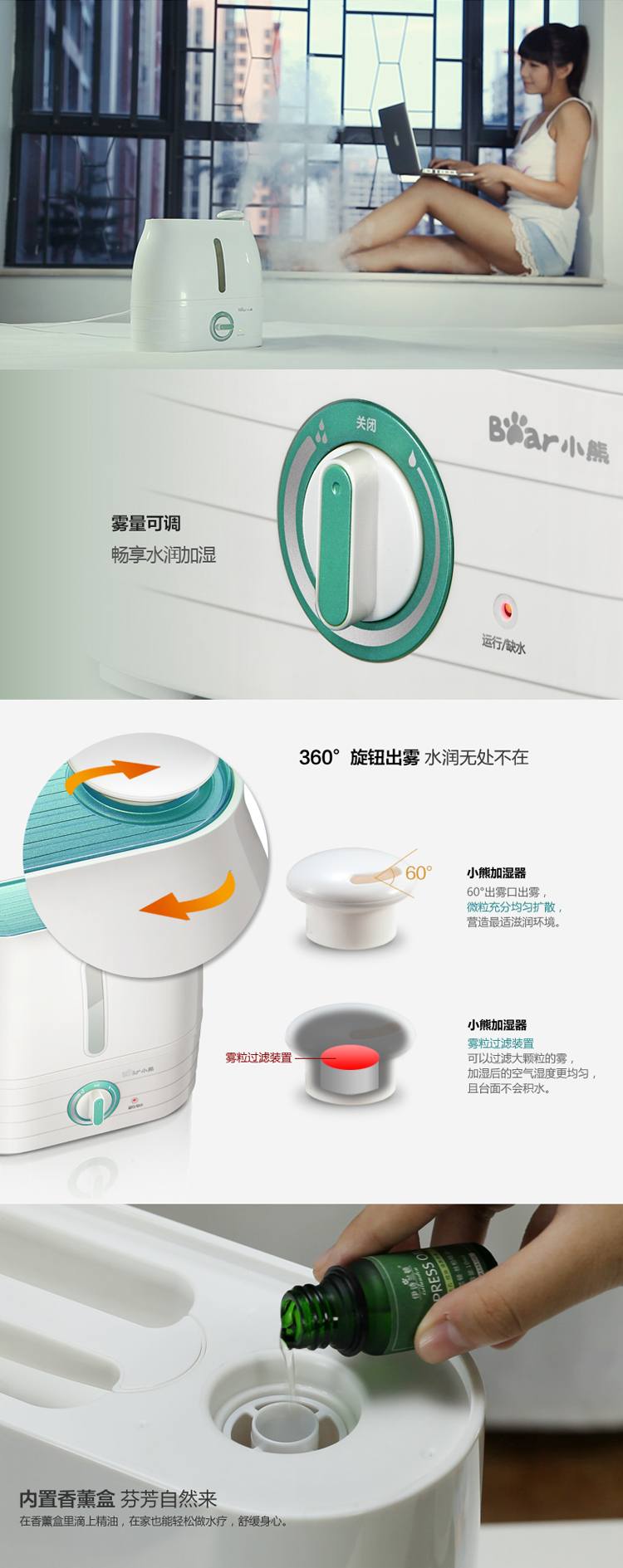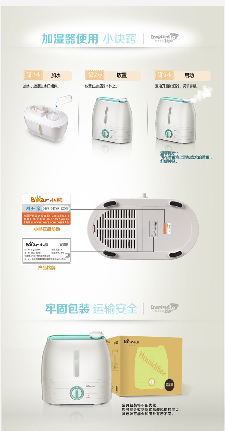 商品名称:小熊(Bear)JSQ-230WA 3升大容量 双重净化加湿器 静音