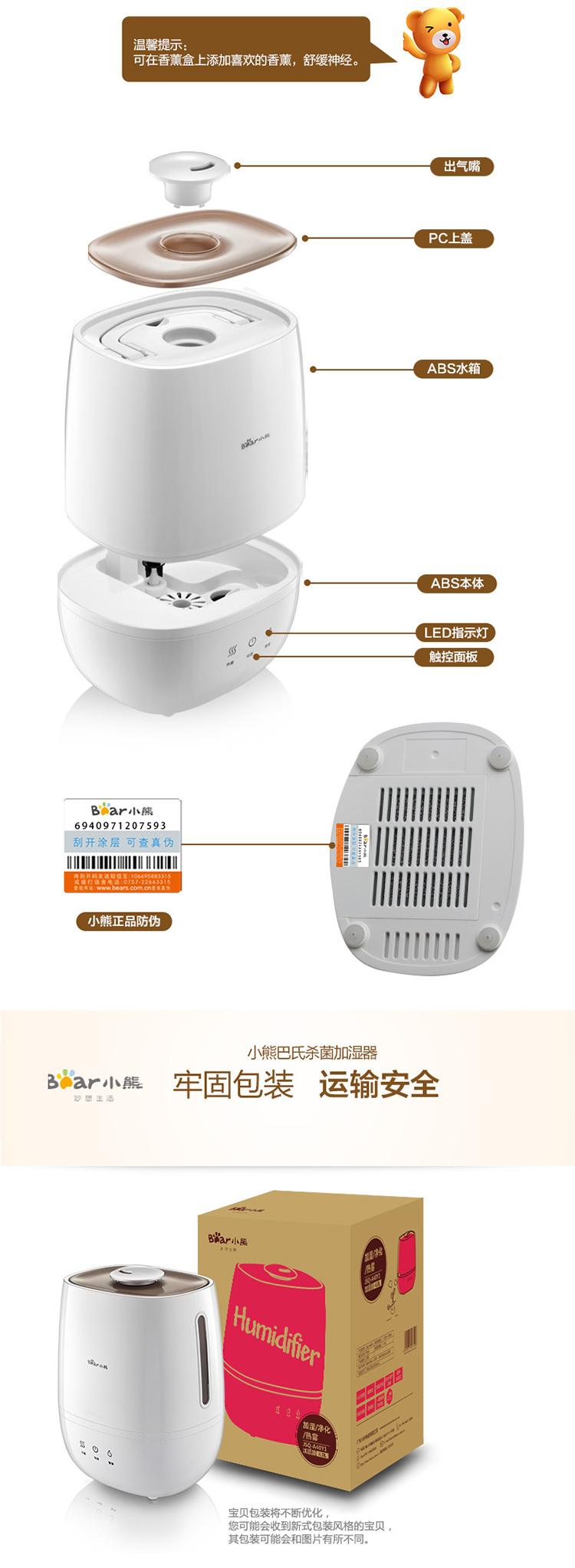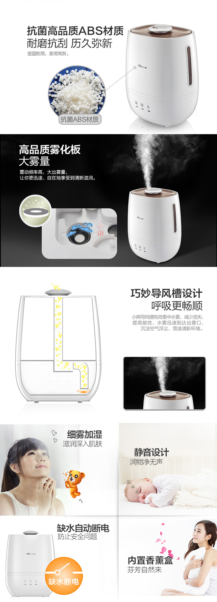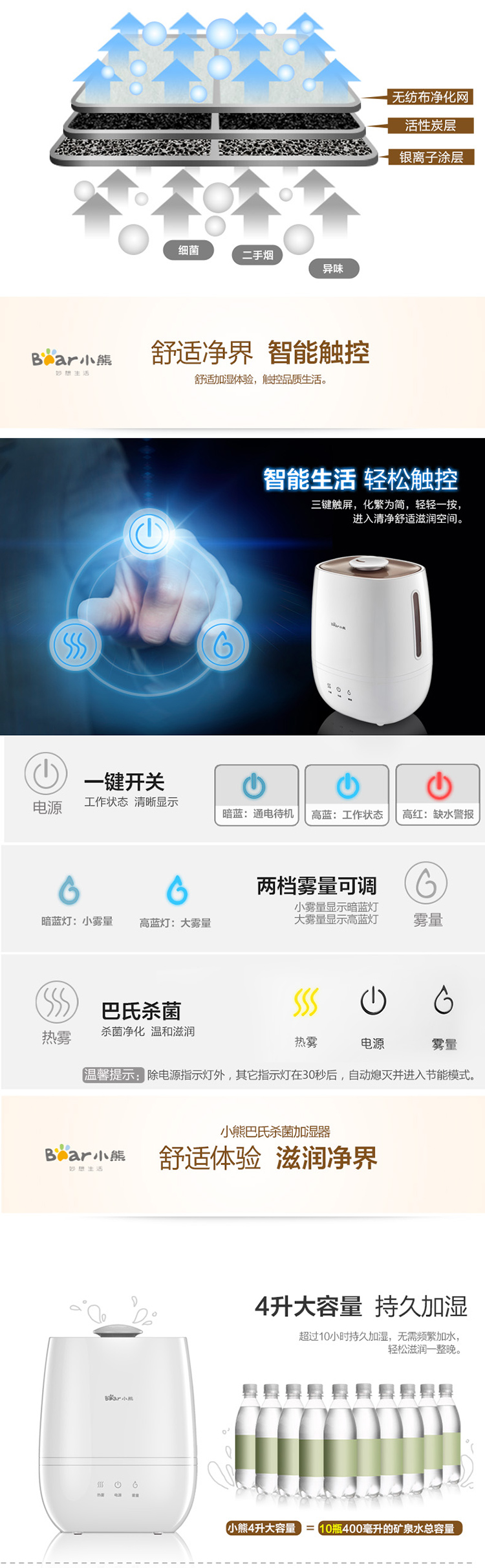 商品名称:小熊(Bear)JSQ-A40Y1 热雾4升大容量加湿器 双层净化细雾静音