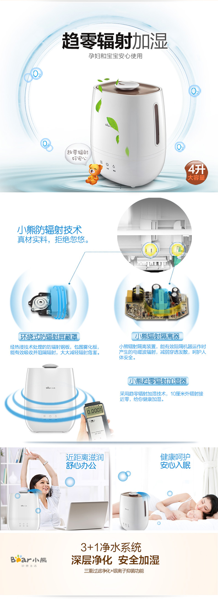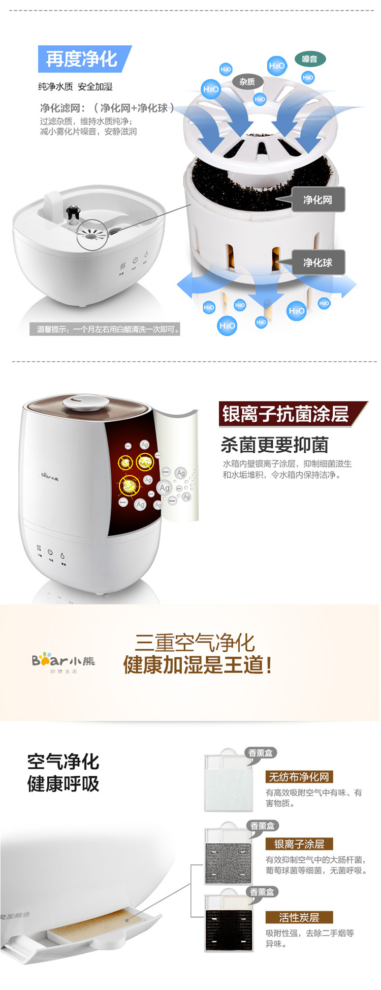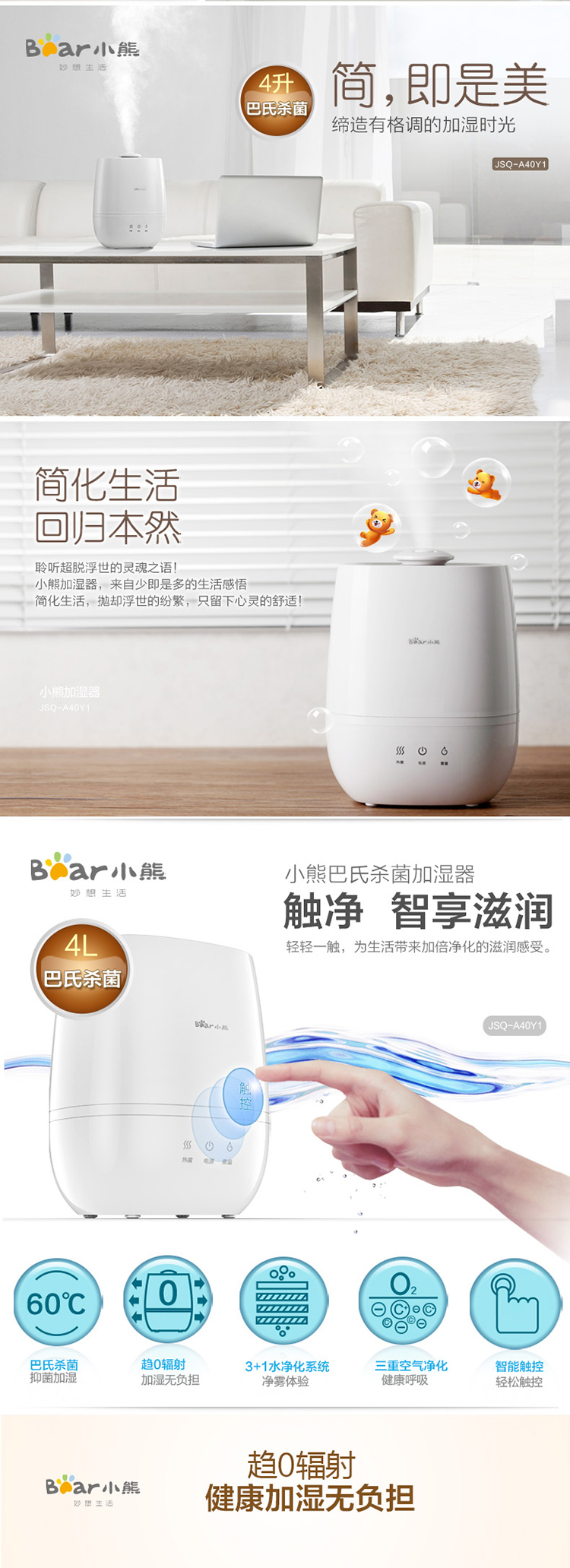 商品名称:小熊(Bear)JSQ-A40Y1 热雾4升大容量加湿器 双层净化细雾静音