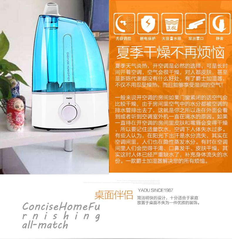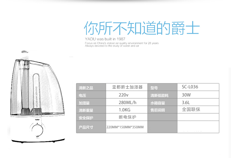 商品名称:亚都家用静音大容量空气加湿器办公室迷你SC-L036
