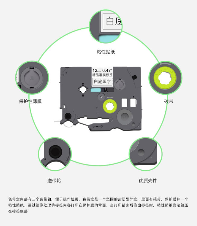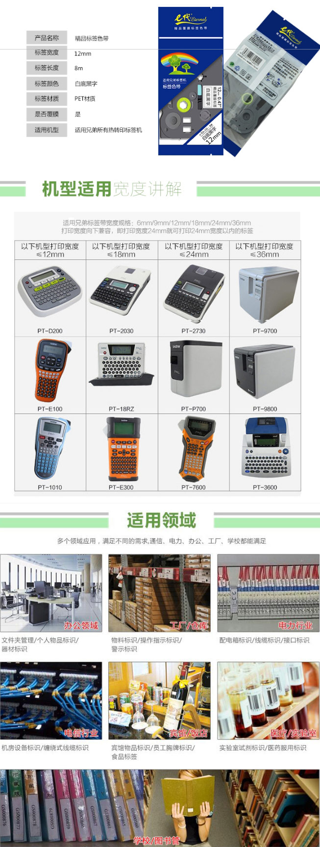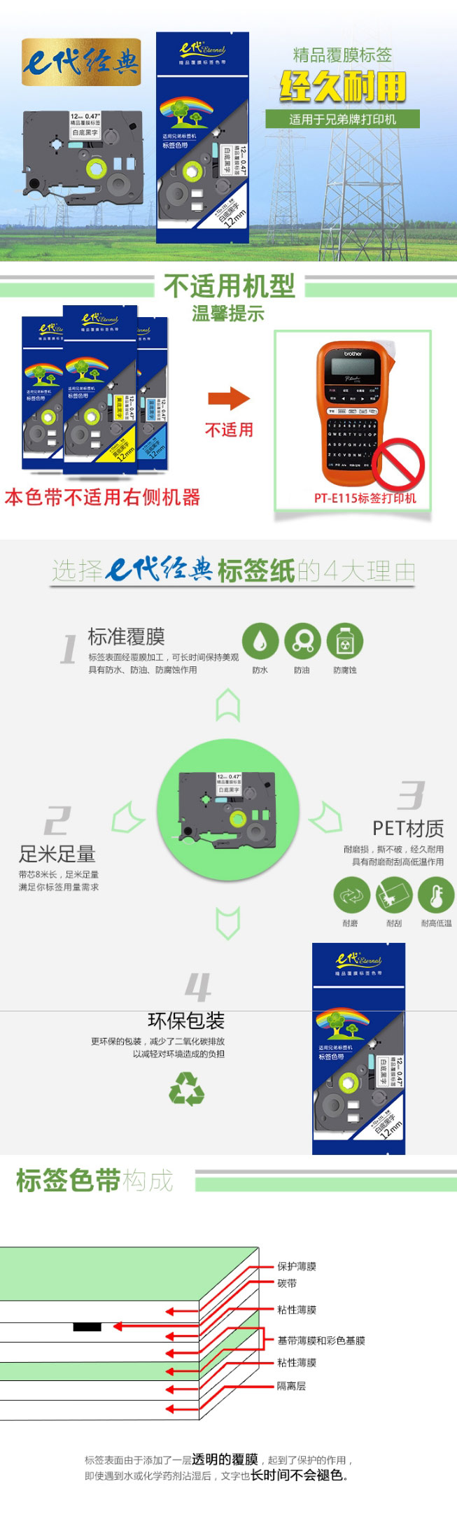 商品名称:e代经典 标签带 12mm标签纸色带 TZe-231 适用兄弟标签机色带 12mm白底黑字 TZe-231