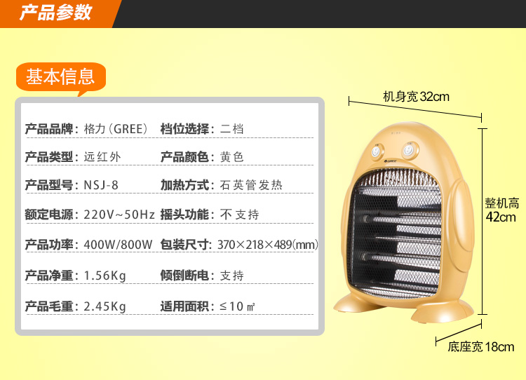 商品名称:格力(GREE)NSJ-8 远红外取暖器/电暖器/电暖气