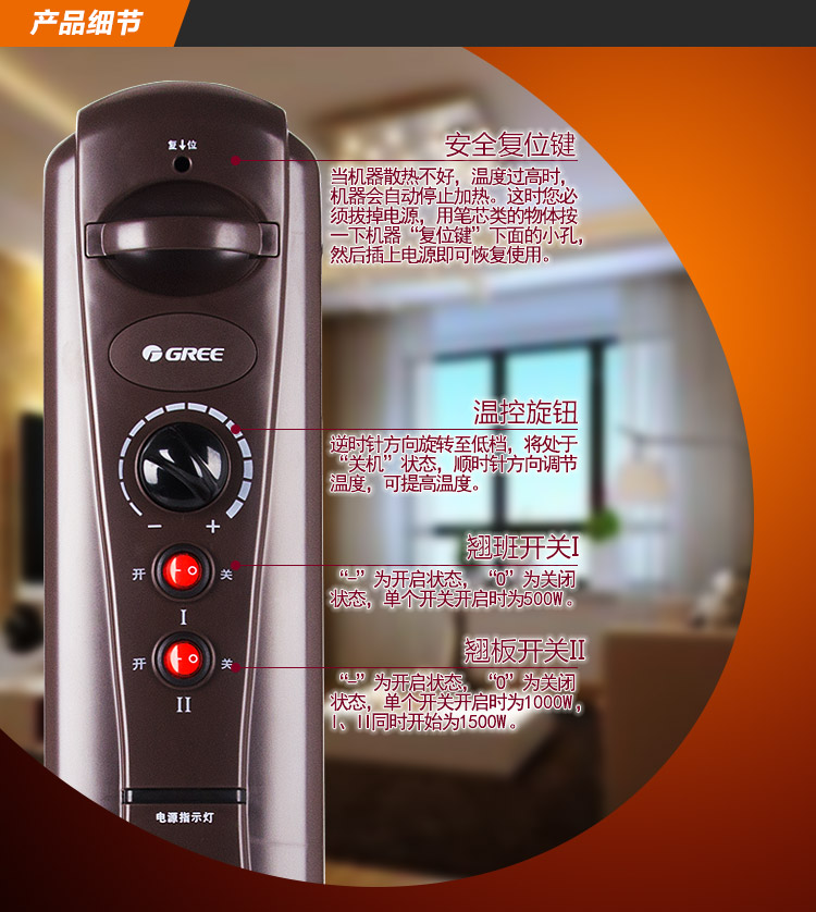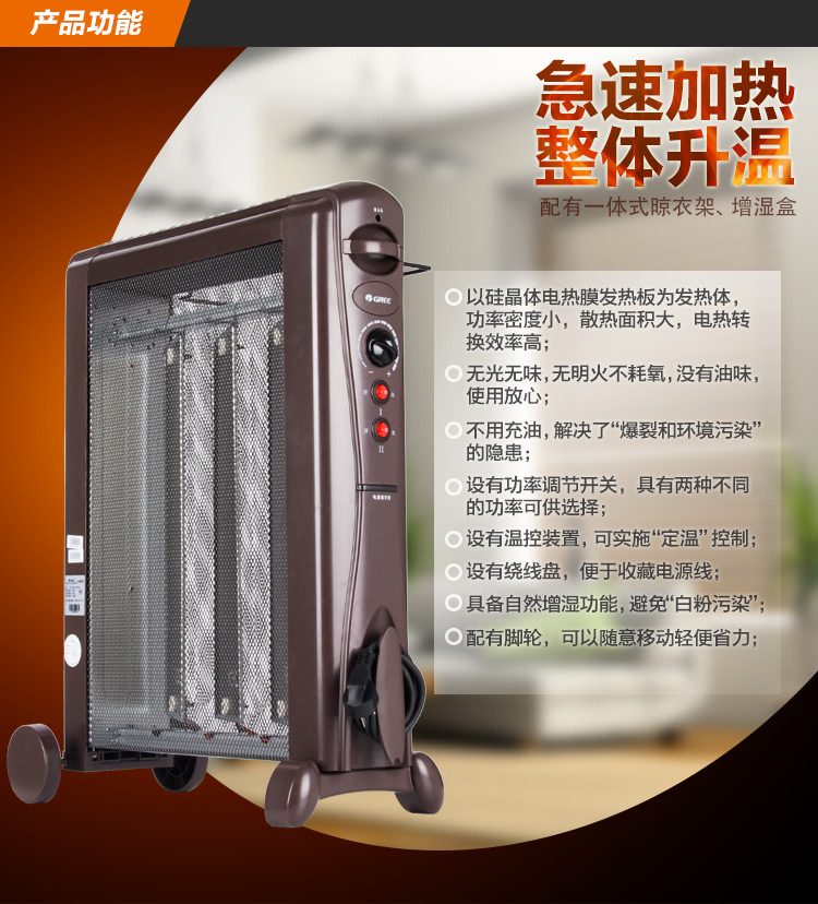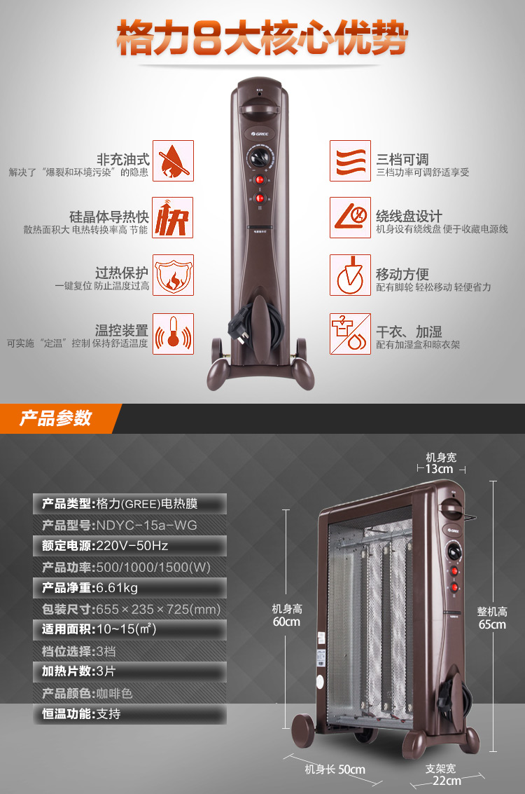 商品名称:格力(GREE)NDYC-15a-WG 硅晶电热膜取暖器/电暖器/电暖气