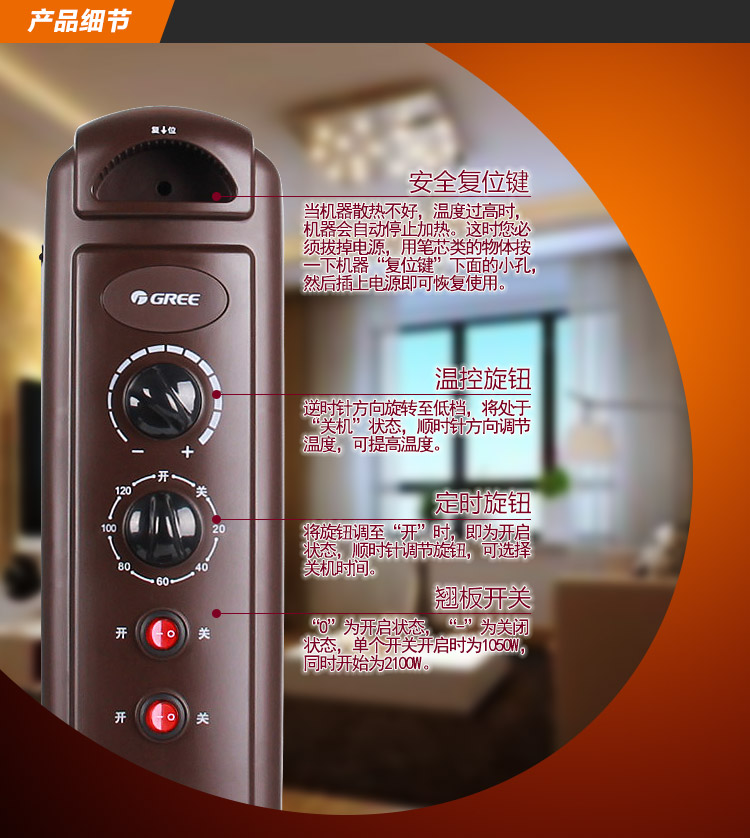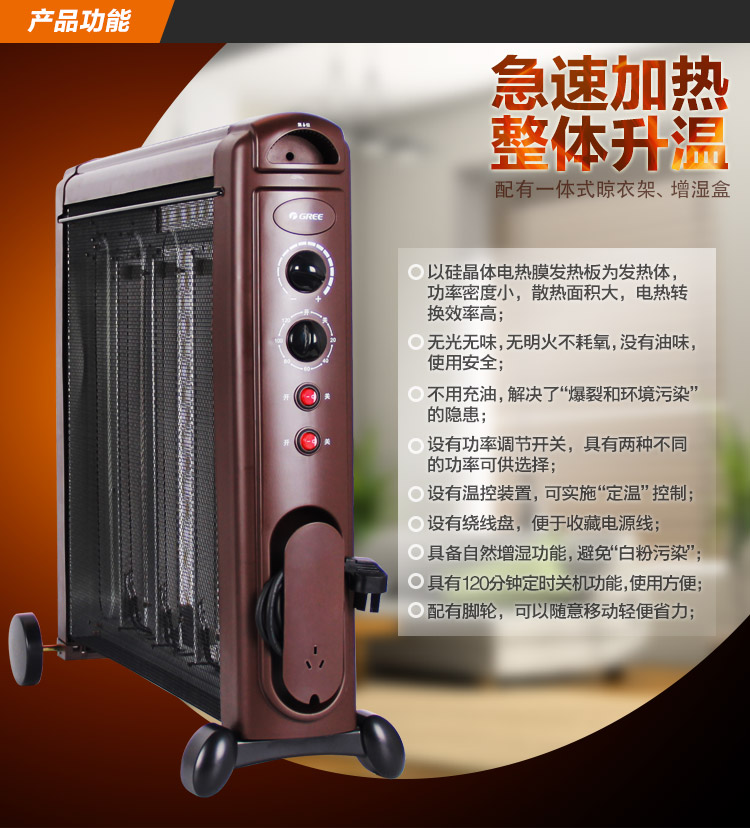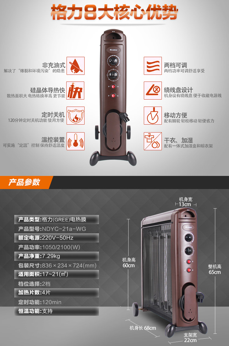 商品名称:格力(GREE)NDYC-21b-WG 硅晶电热膜取暖器/电暖器/电暖气