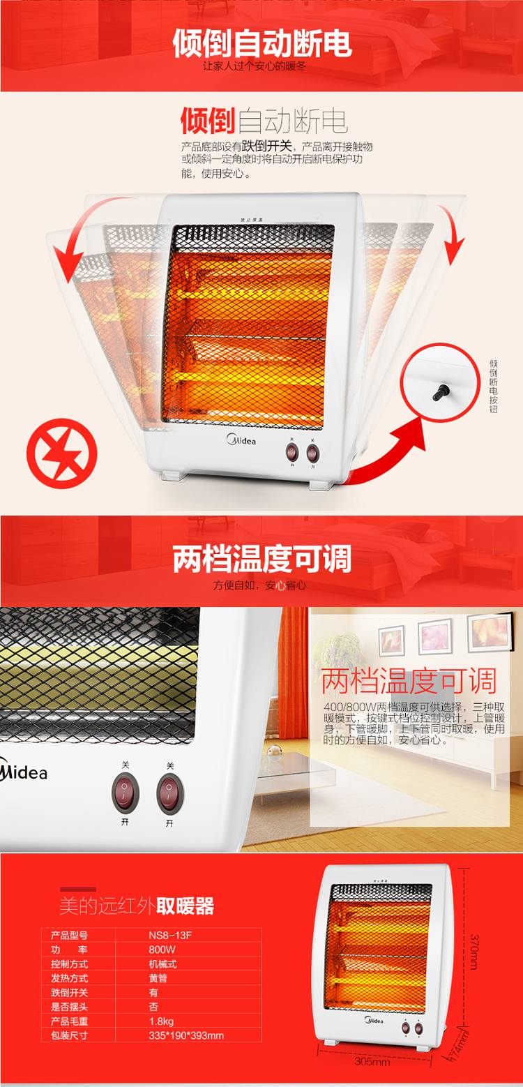 商品名称:美的(Midea)NS8-13F远红外电暖器