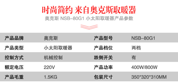 商品名称:奥克斯(AUX)NSB-80G1 台式小太阳
