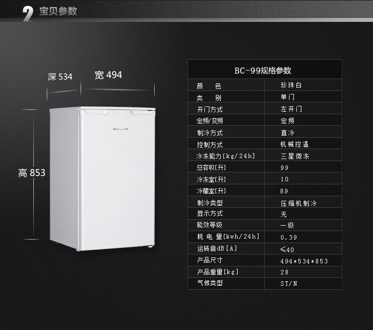 商品名称:容声(Ronshen)BC-99/DS 99升 单门冰箱