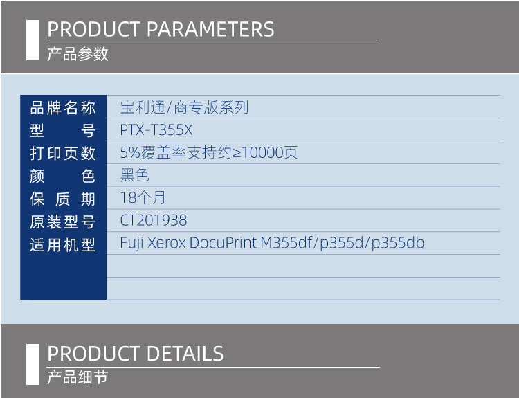 - 商品名称:宝利通(商专版系列)PTX-T355X 硒鼓 适用Fuji Xerox DocuPrint M355df/p355d/p355db