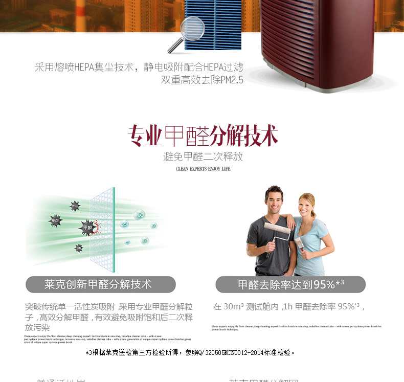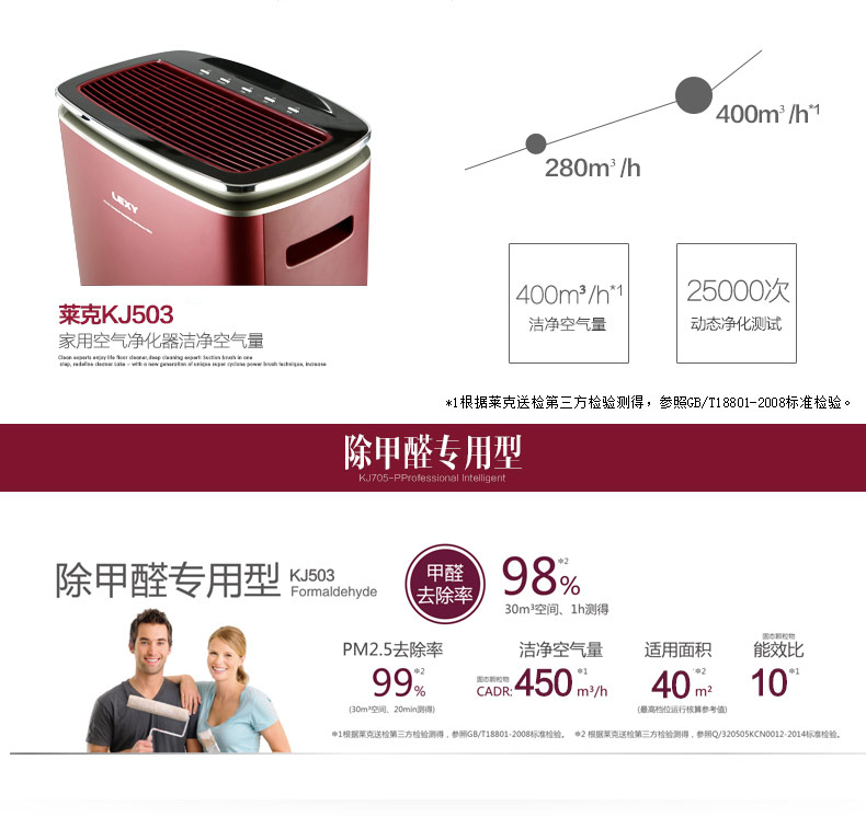 商品名称:莱克(LEXY)KJ503A/F大洁净空气量除甲醛雾霾专用空气净化器