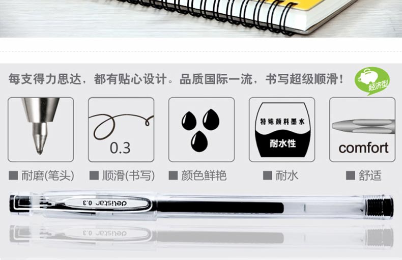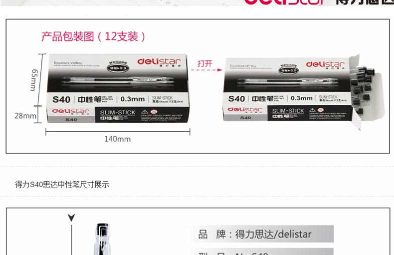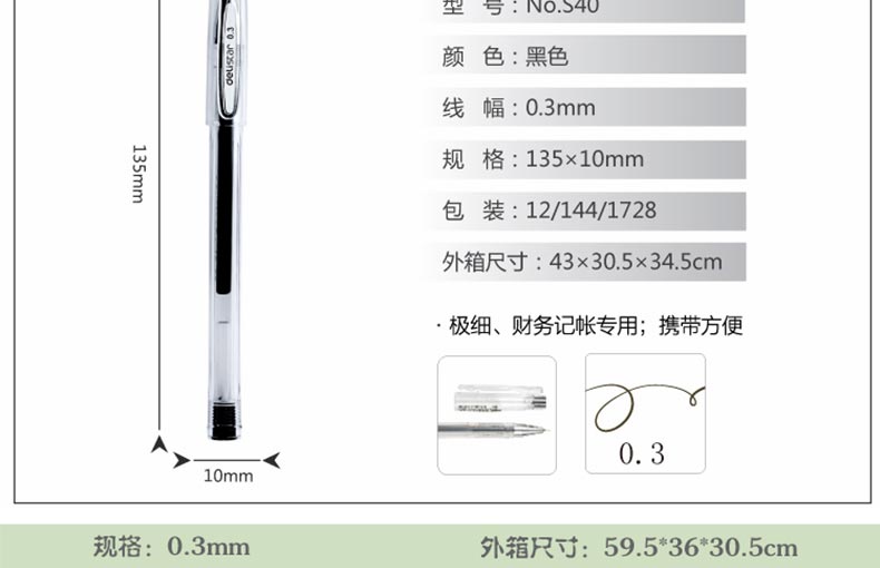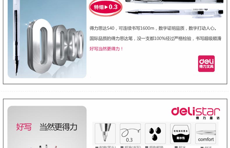 商品名称:得力(deli) S40 0.3mm中性笔 黑色 (计价单位:支)