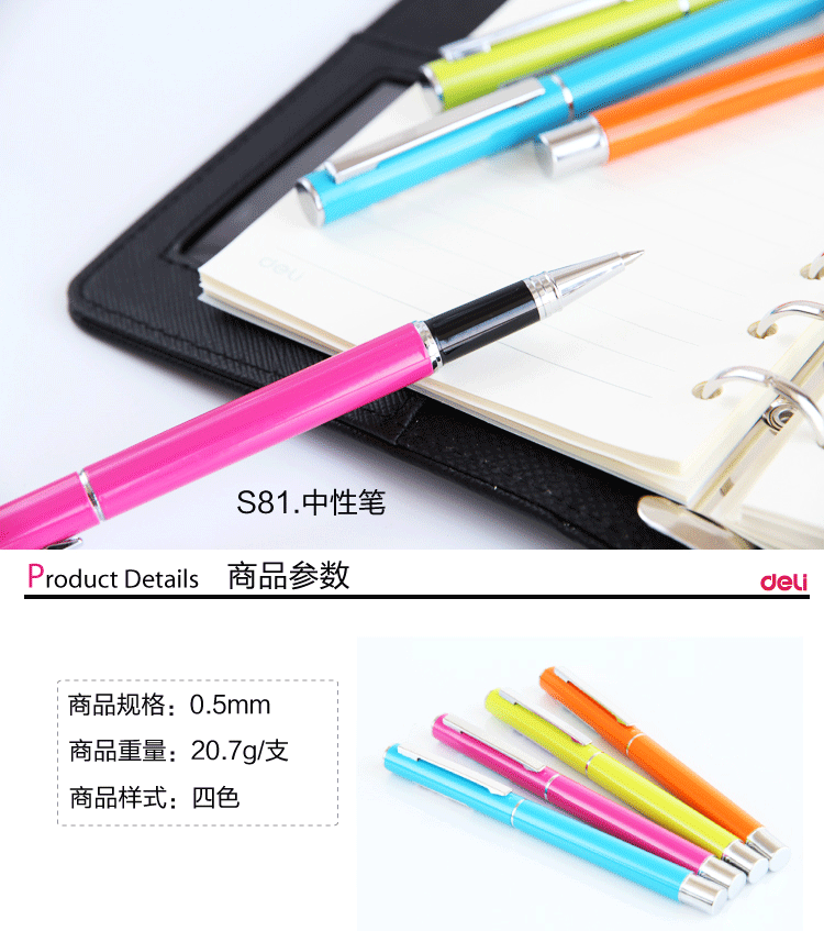 商品名称:得力 (deli )S81金属中性笔 0.5mm (计价单位:支)