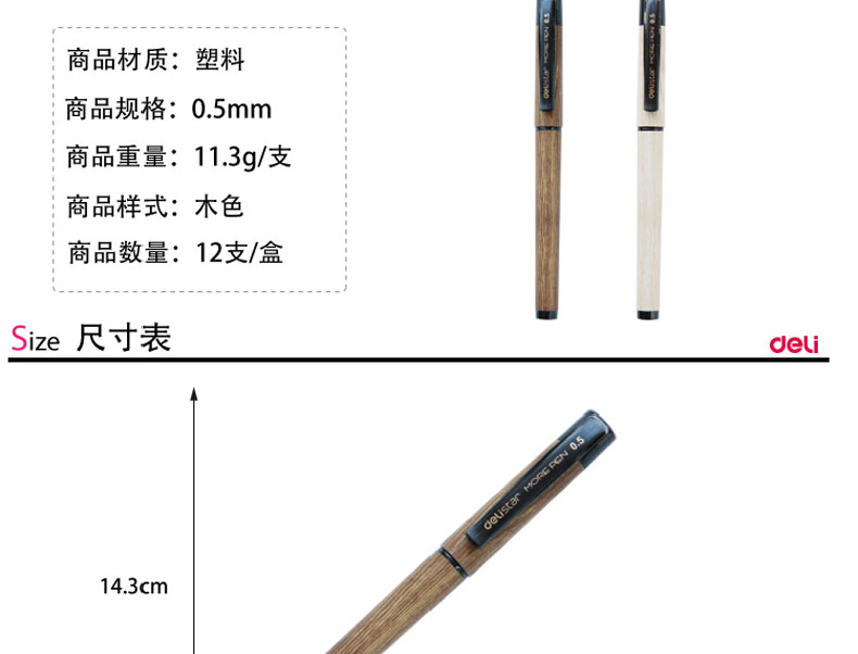 商品名称:得力(deli)S28木本系列中性笔 0.5mm 黑色